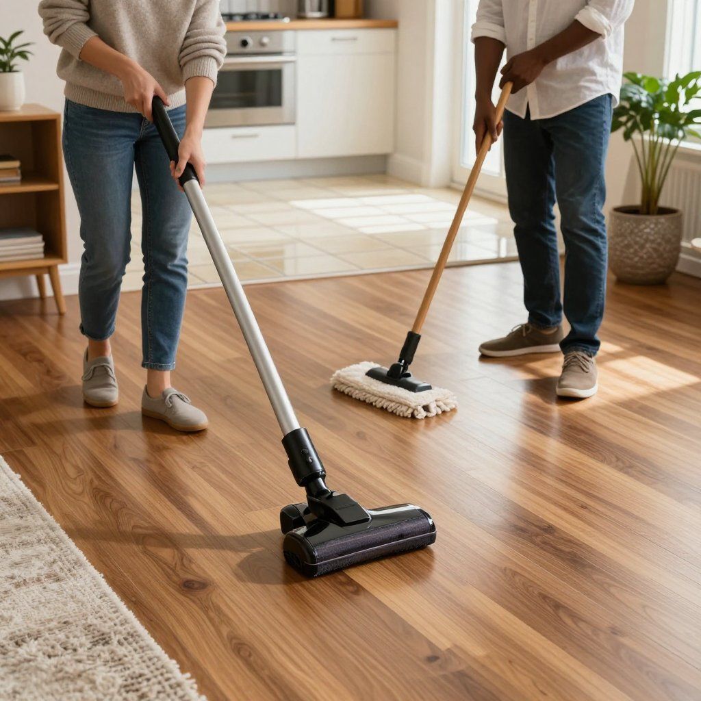 Every room vacuumed, mopped, and wiped down