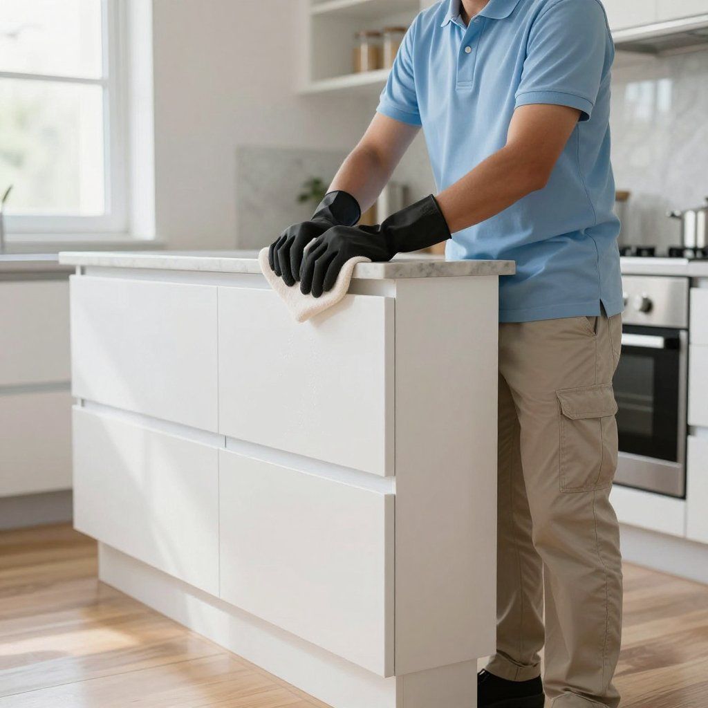 Before: You open a kitchen cabinet to put your dishes away and pause. You're not sure what that residue is. You wipe it yourself. You wonder about the others. After: Every cabinet was cleaned before you put a single thing in it. You know what's in them — your stuff, on clean shelves. It's a small thing that changes how you feel about your kitchen every day.